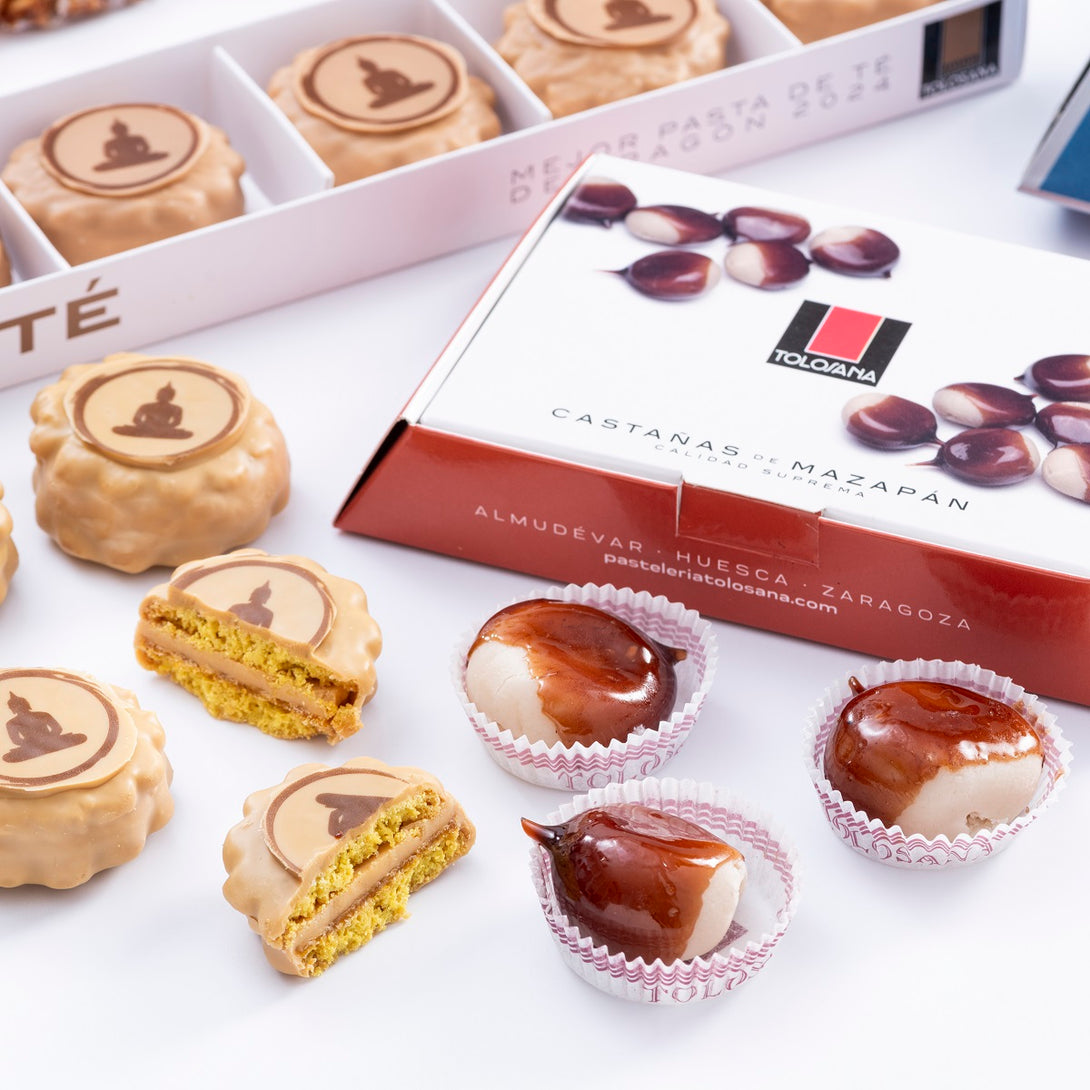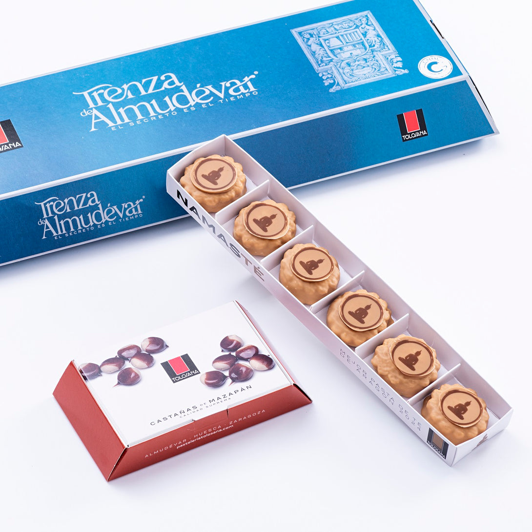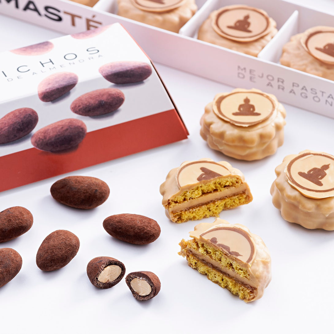 Elige nuestro pack con la selección y combinación de nuestras especialidades más reconocidas. Con un descuento especial por escoger esta opción. Pack compuesto por la auténtica Trenza de Almudévar, 1 estuche de Pastas Namasté, premio Mejor Pasta de Aragón, y una caja de crujientes y sabrosos, Caprichos de Almendra con todo su sabor de chocolate.