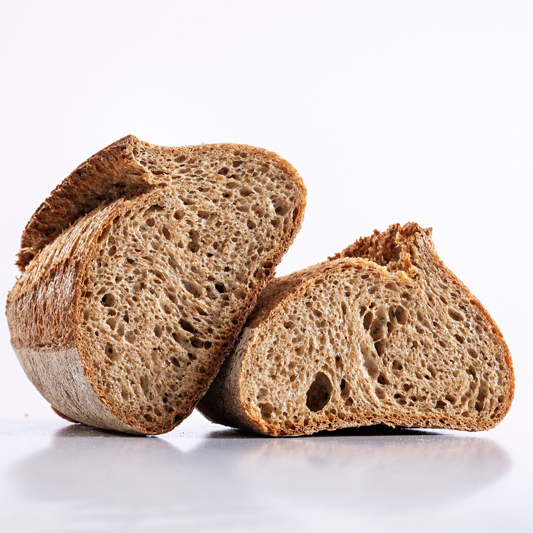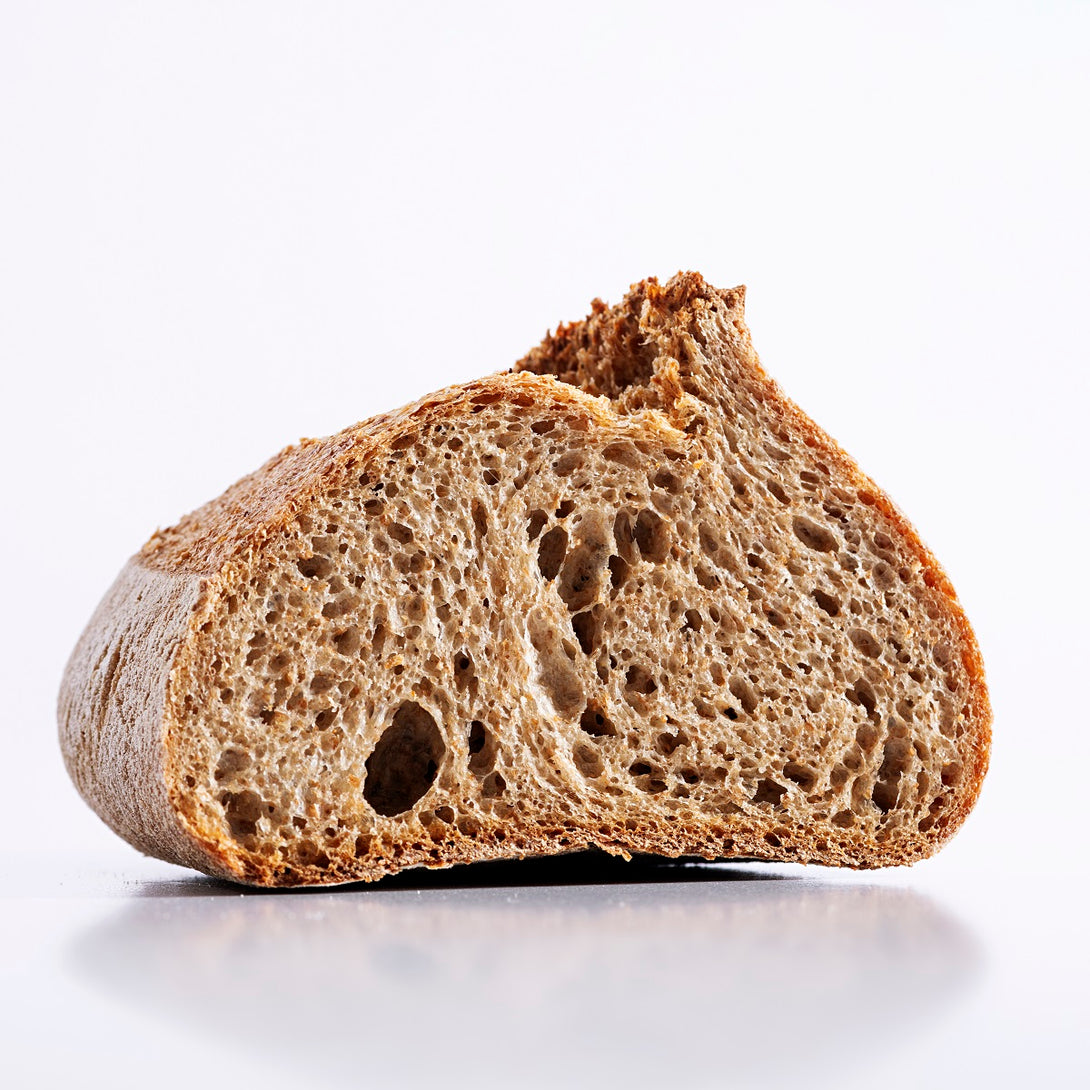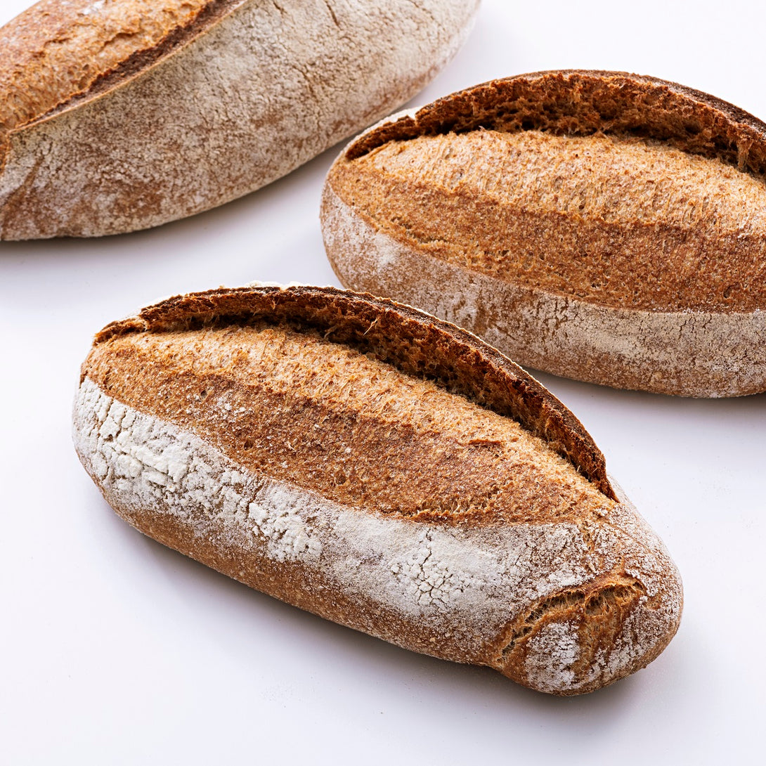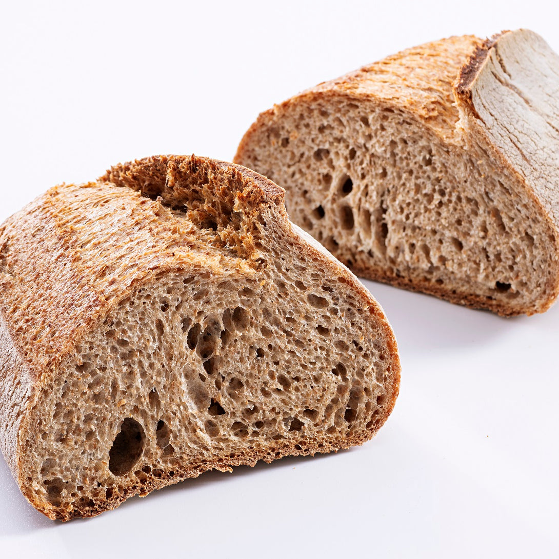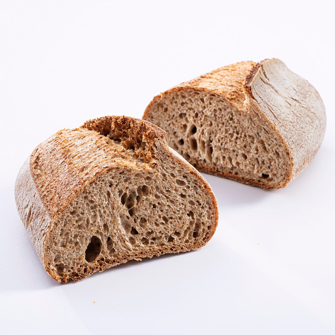 Elaborado con 100% de harina de trigo integral. Con un sabor marcado a cereal , pero manteniendo una miga tupida, pero muy tierna y una corteza sabrosa y crujiente. Pan con 18 horas de fermentación y con un 30% de masa madre integral, que aporta muchos nutrientes que no se obtienen con la harina blanca, como vitamina E, mucha fibra, ácidos grasos esenciales y minerales como el potasio, el magnesio, hierro, cinc…