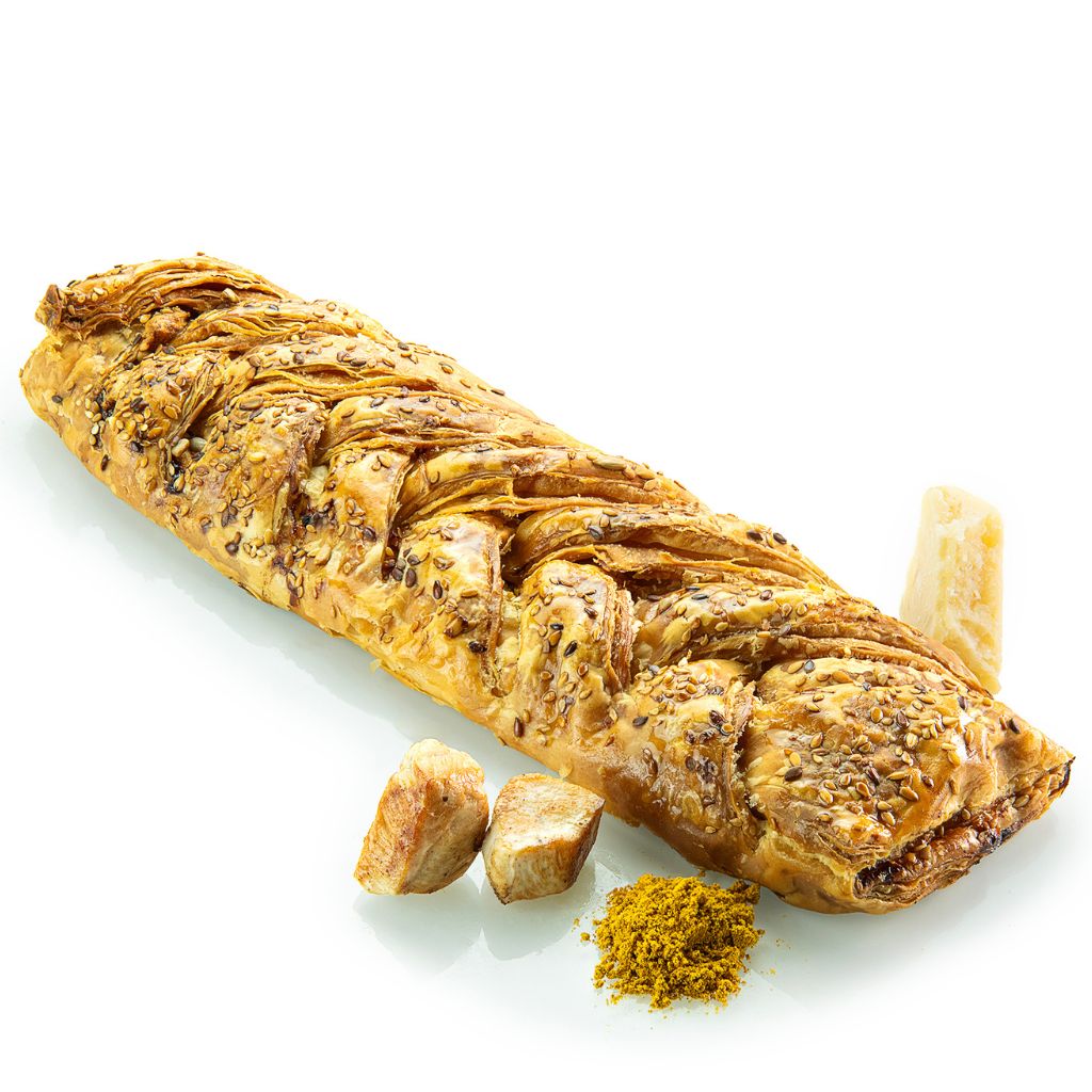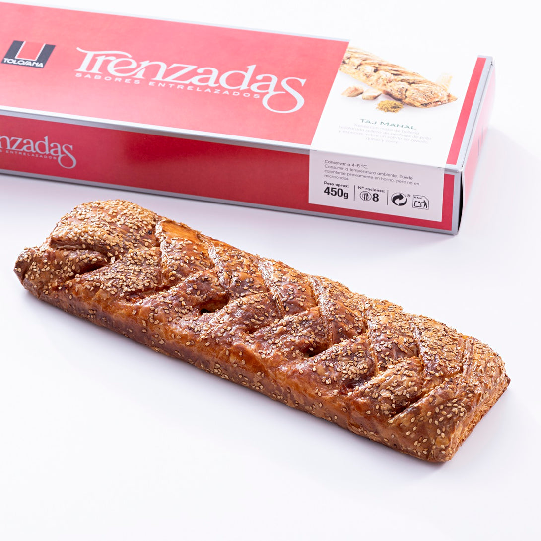 Fusión de sabores y aromas únicos, que nos traslada a los exóticos sabores de la cultura India, elaborada con un relleno de pollo sobre un sofrito de cebolla armonizado con tradicionales especias al más puro estilo oriental, pimienta, orégano, tomillo queso y curry.